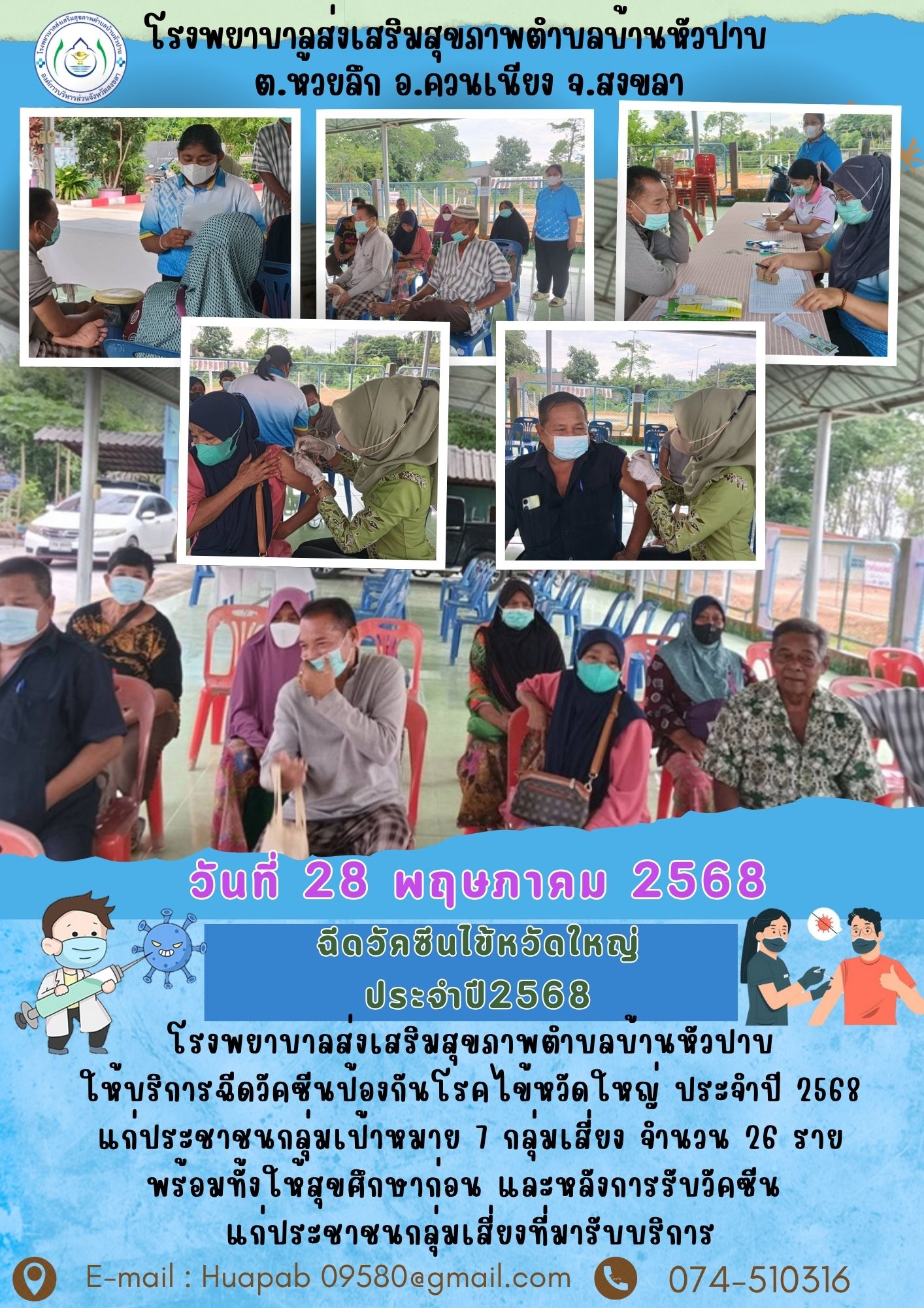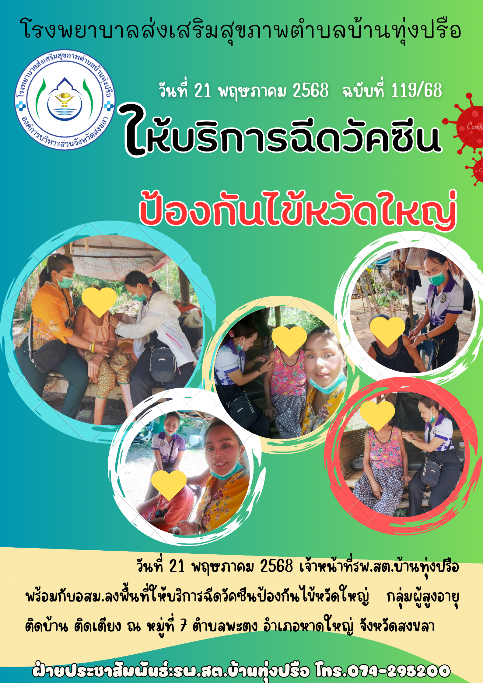 ให้บริการฉีดวัคซีน ไข้หวัดใหญ๋ กลุ่มเป้าหมายอายุ 65 ปี ขึ้นไปและ 7 กลุ่มโรค
