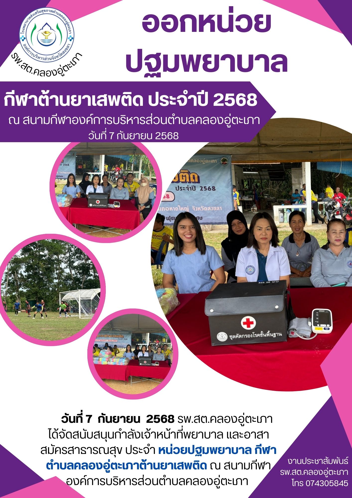 ออกหน่วยปฐมพยาบาล กีฬาตำบลคลองอู่ตะเภาต้านยาเสพติด อ่านต่อ