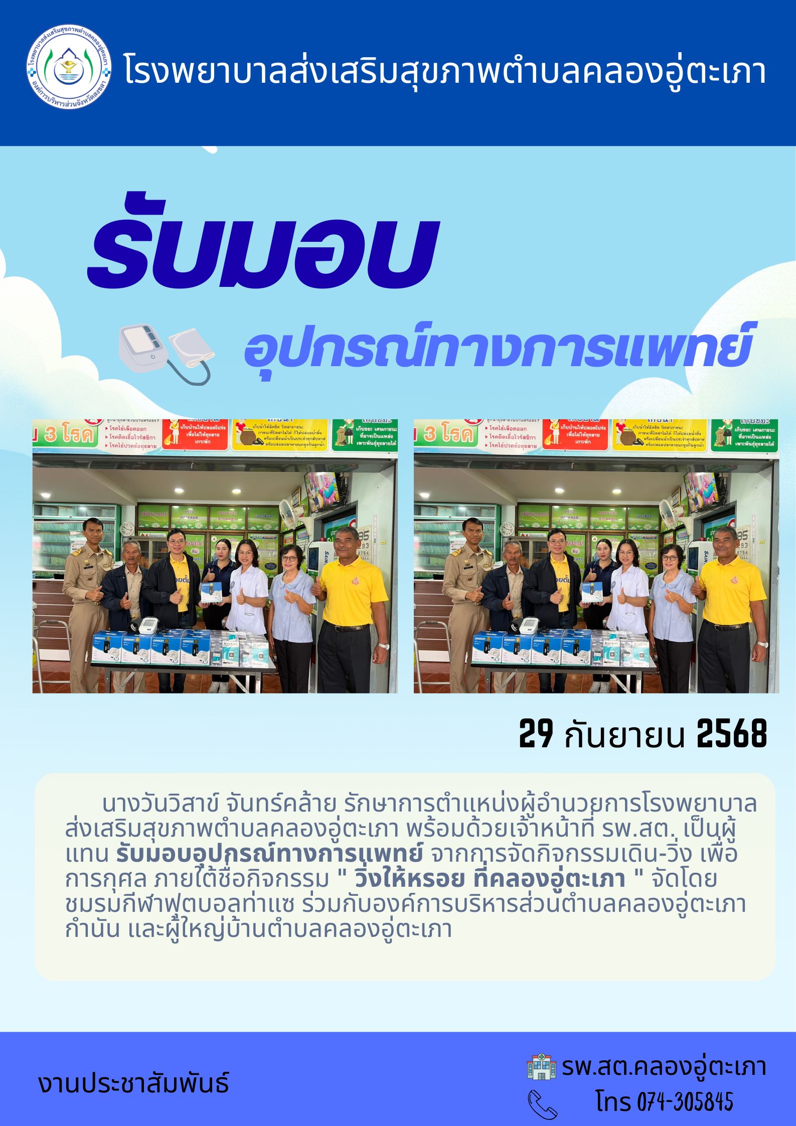รับมอบอุปกรณ์ทางการแพทย์ จากการจัดกิจกรรมเดิน-วิ่ง เพื่อการกุศล อ่านต่อ